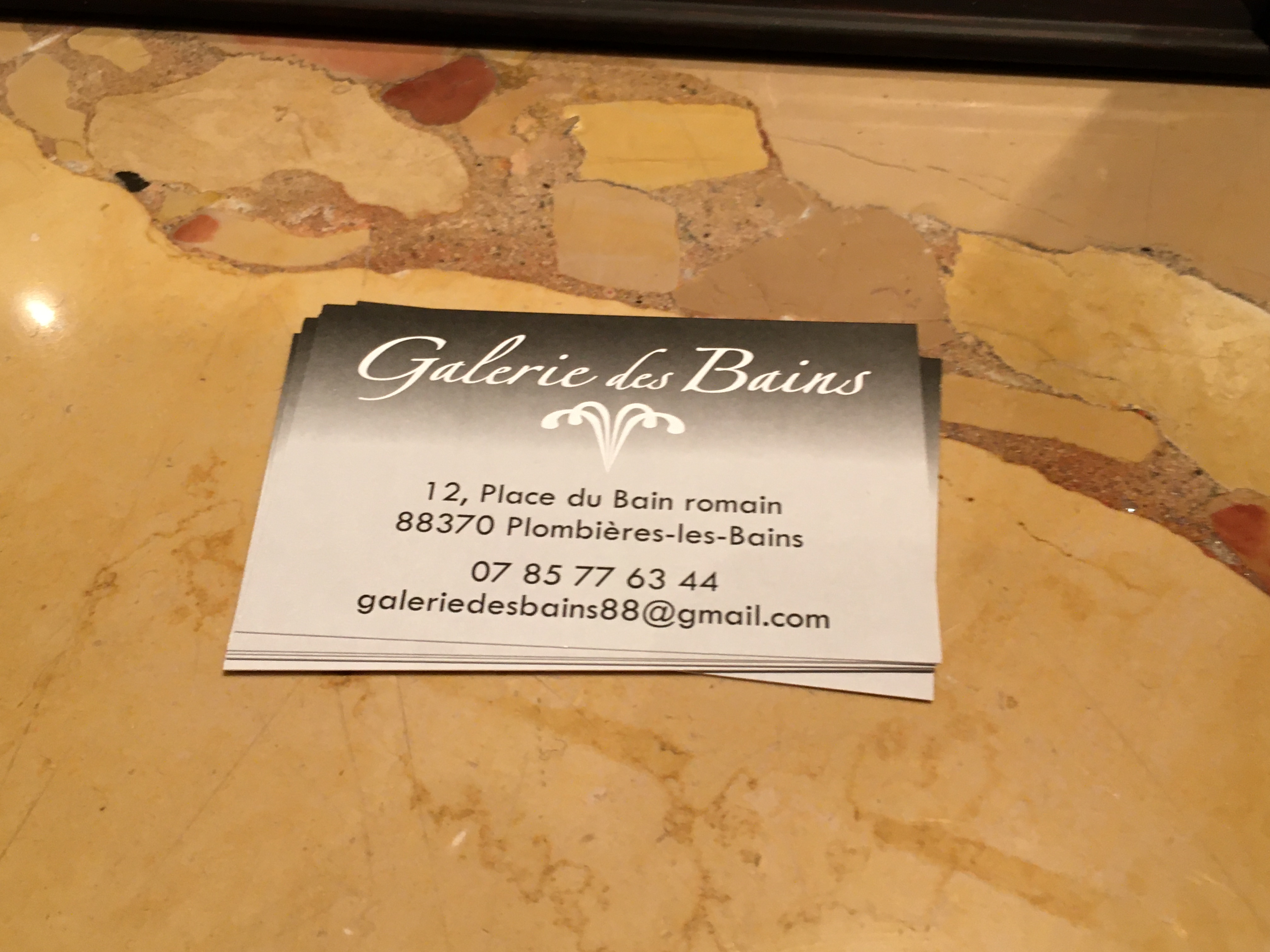 Galerie des Bains / 12 Place du Bain romain / 88370 Plombières-les-Bains / Mail : galeriedesbains88@gmail.com / Tél : +33 7 85 77 63 44